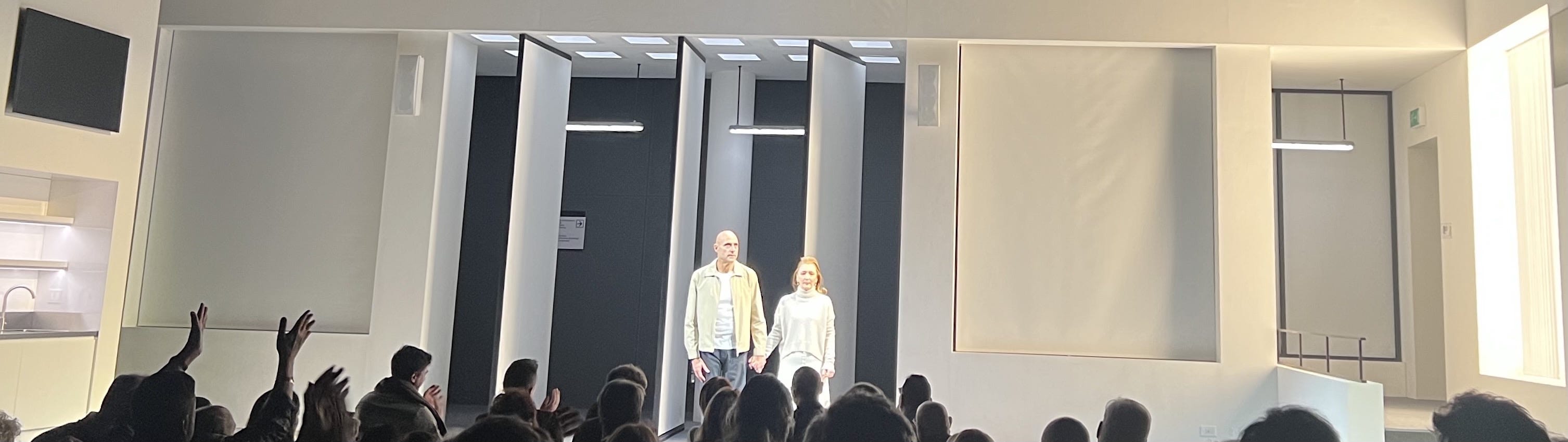 Icke fills Oedipus with video screens and a non-stop reel of faux news-night election coverage intercut with faux interview newsclips of Oedipus. Any live theatrical creation that opens with a video, as Oedipus does, has already lost me (though that’s, ultimately, my problem). End-to-end, there was a lot happening beyond the screens onstage that I applauded about Icke’s Oedipus; the tempo is taut; the inside baseball of a big-time election campaign is vivid; the depiction of Oedipus family life stripped of its public facade, kids and all, is nicely tough and tender.